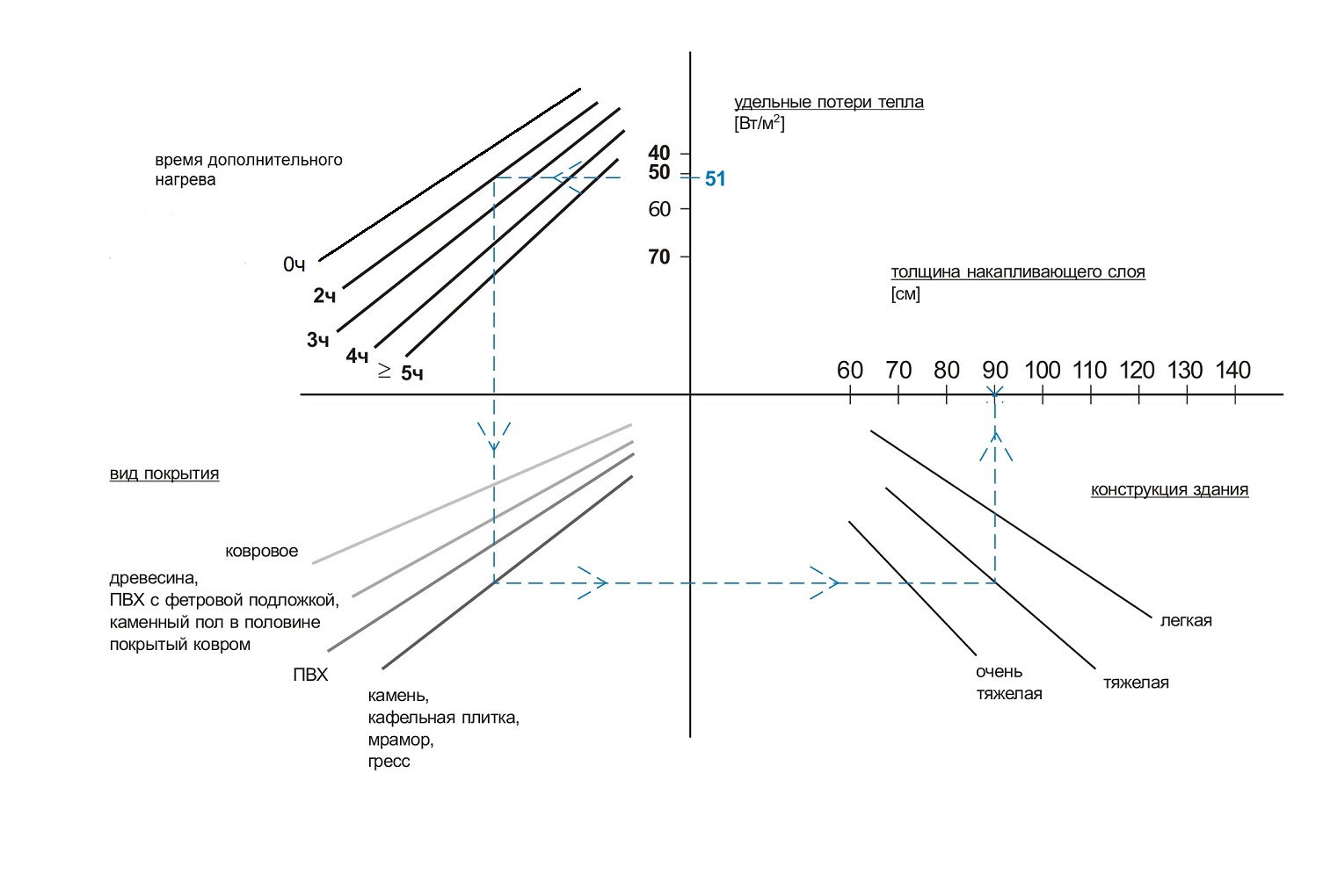Используя номограмму выбора толщины аккумулирующего слоя определяем толщину бетонного слоя: 9 см.