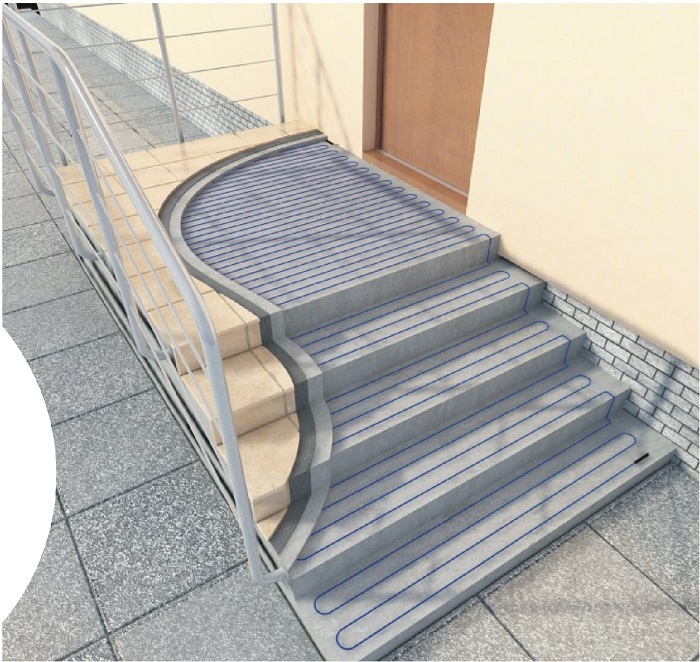 Для гарантированной защиты от наледи уличных ступеней требуется обеспечить мощность обогрева 250 - 300 Вт./м2.
