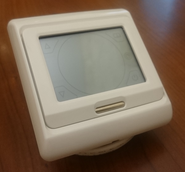 Оснащен двумя датчиками температуры. Один датчик для замера температуры пола, второй для замера температуры воздуха (встроен в терморегулятор).