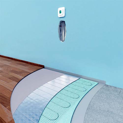 Укладка теплого пола на чистовой поверхности под панелями пола (ламинатом) или паркетной доскойДля достижения ожидаемого эффекта теплого пола достаточно мощности 60 - 70 Вт на 1 м2. Для этого используются нагревательные маты ELEKTRA WoodTec160 или ELEKTRA WoodTec270.