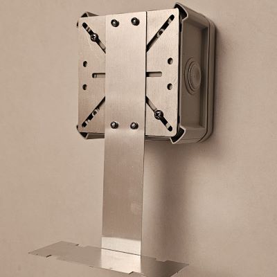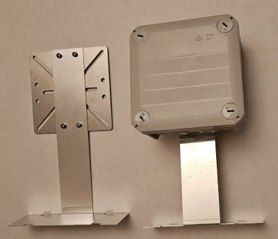 Размер площадки 100 х 100 мм, крепежные отверстия универсальны, и подходят к большинству монтажных коробок. Высота крепления 100 мм, удобный доступ для коммутации. В комплект опорных кронштейнов входят крепежные саморезы для крепления распределительной коробки или термостата.