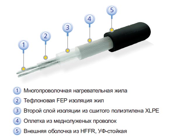 | Выходная мощность нагревательного кабеля | 40 Вт/м |